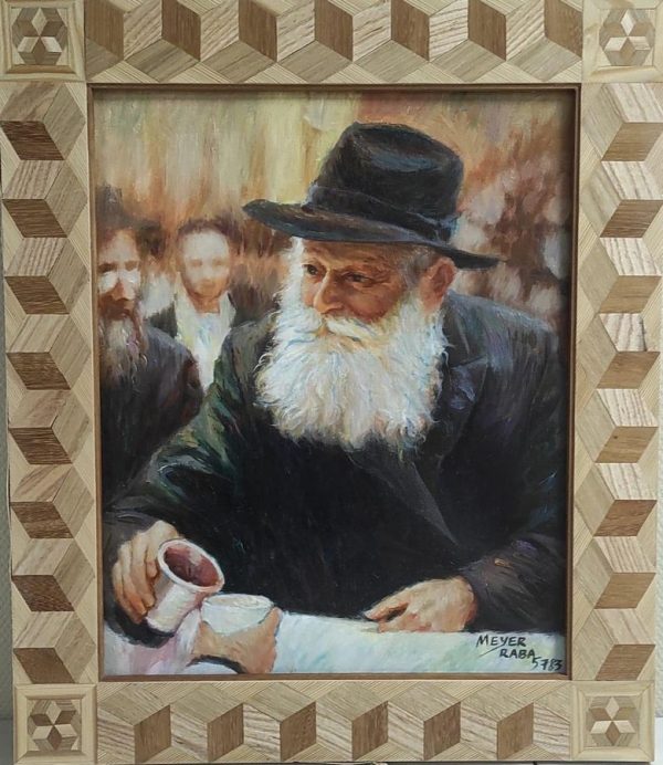 Peinture du Rabbi LéHAÏM : Peinture à l’huile avec des dizaines de couches successives afin d’apporter un réalisme complet de notre bien-aimé Rabbi, sur toile de lin de 400g. Par l’artiste Meyer Raba. Encadrement réalisé par un Maitre ébéniste.